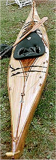 The cockpit opening is a keyhole designed like the one used in many of the English boats. This allows for an easy entry and exit, it keeps the over all opening area to a minimum. This is helpful on surf launchings as it lets in water. It also allows for comfort on long trips where it allows your knees to be raised from the seated position. The lower back deck at the cockpit makes this boat easy to lie back on the deck for an easy screw roll.